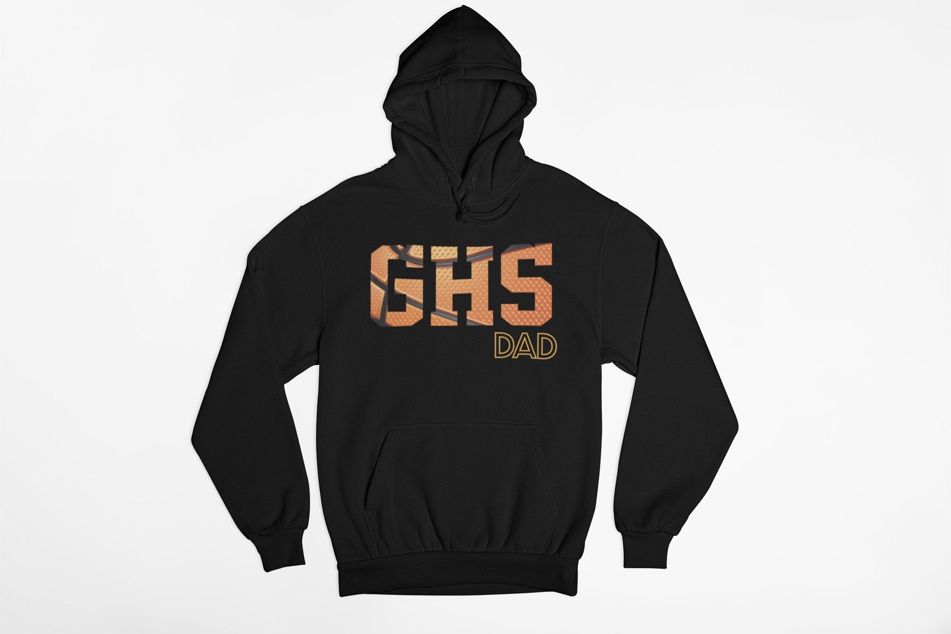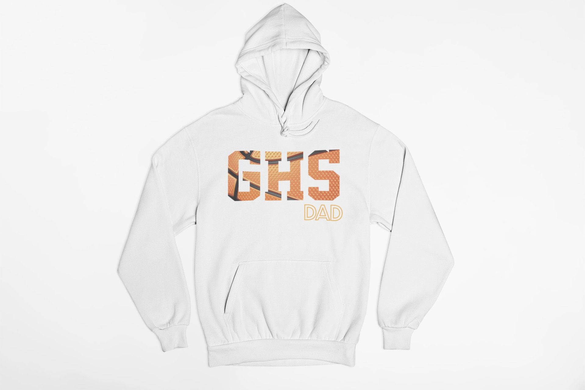 Introducing our GHS Basketball Dad hoodie, designed for those Dads to show theie pride and love to showcase it in style. The bold and eye-catching design features a block GHS printed in a basketball-style pattern. Under the bottom left is an outline DAD printed in a Gaylord Maize color.