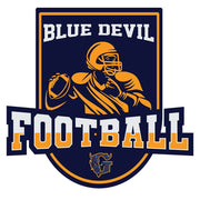 Introducing the Blue Devil Football Decal, a spirited emblem of team pride! This dynamic decal showcases a football player in action, surrounded by the bold lettering "Blue Devil Football" in classic blue and gold hues. At the bottom, the iconic Gaylord Blue Devil "G" adds a finishing touch. Measuring approximately 5.7" wide and 5.7" tall, it's the perfect size to proudly display on your car, laptop, or any smooth surface. Let your support for Blue Devil Football shine with this standout decal, and cheer on the team with passion!