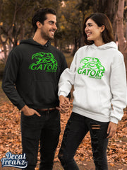 This Hooded Sweatshirt is a unisex fit and available in many color options. The design is a full Gators Swim Club logo in true green foil.