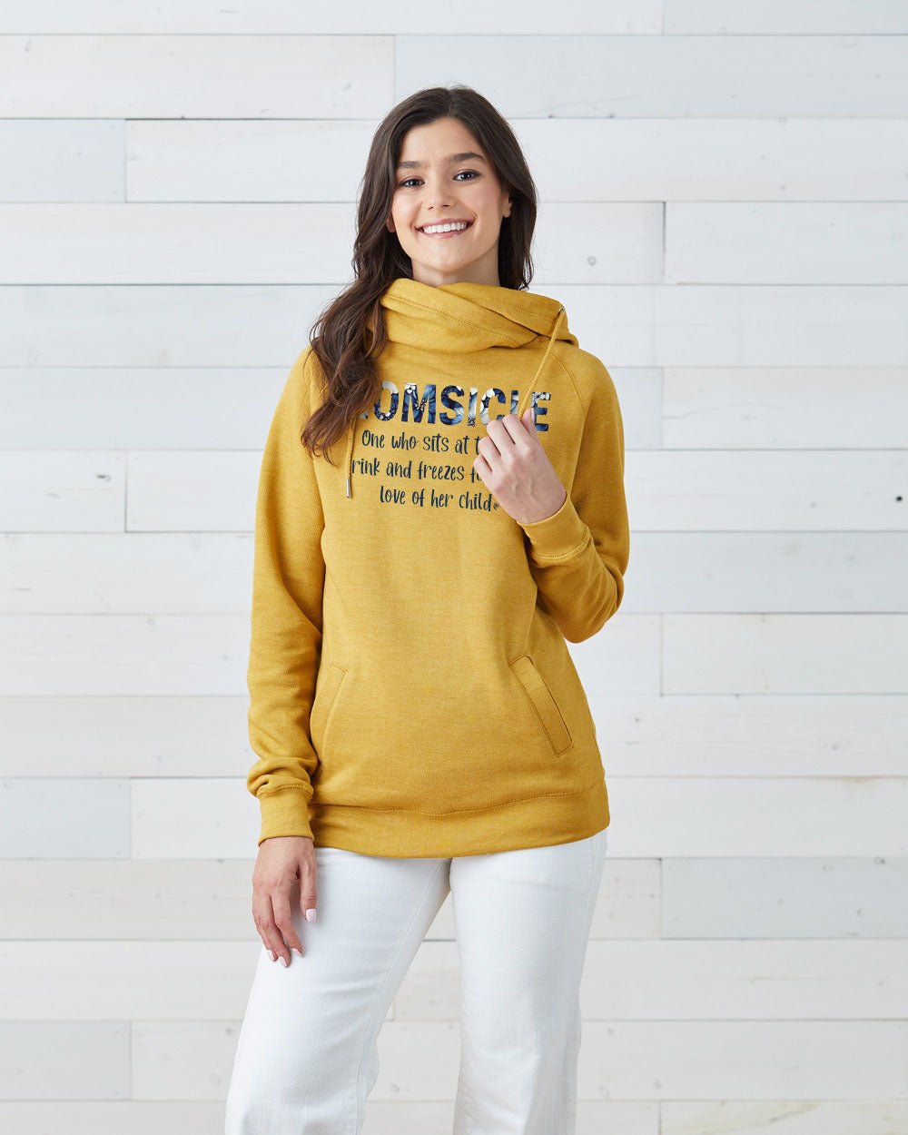 Introducing our Momsicle Gold Funnel Neck Hoodie with Blue Flowers – a cozy and stylish way to honor the amazing moms who brave the elements for their children's love of sports. This hoodie features a warm and trendy gold funnel neck design, perfect for staying comfortable during those chilly game days.